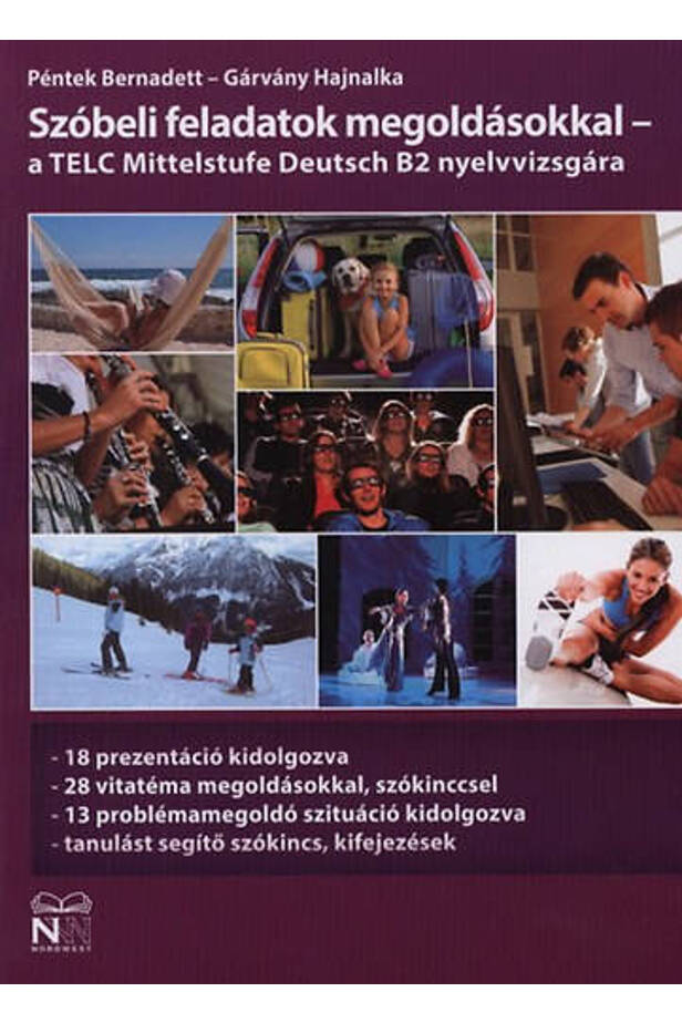 A kiadvány a szerzők Test - und Übungsbuch TELC B2 könyvének szóbeli párja.Ajánlott a nyelvvizsgára készülőknek, csoportos és egyéni tanuláshoz is. Tartalma: 18 prezentáció kidolgozva, 28 vitatéma, 10-hez vélemények, 13 szituáció kidolgozva, kifejezéslisták a feladatok megoldásához, valamit a szóbeli vizsga menetének és feladatainak leírása magyar nyelven..